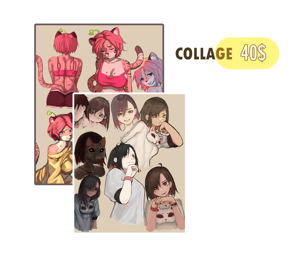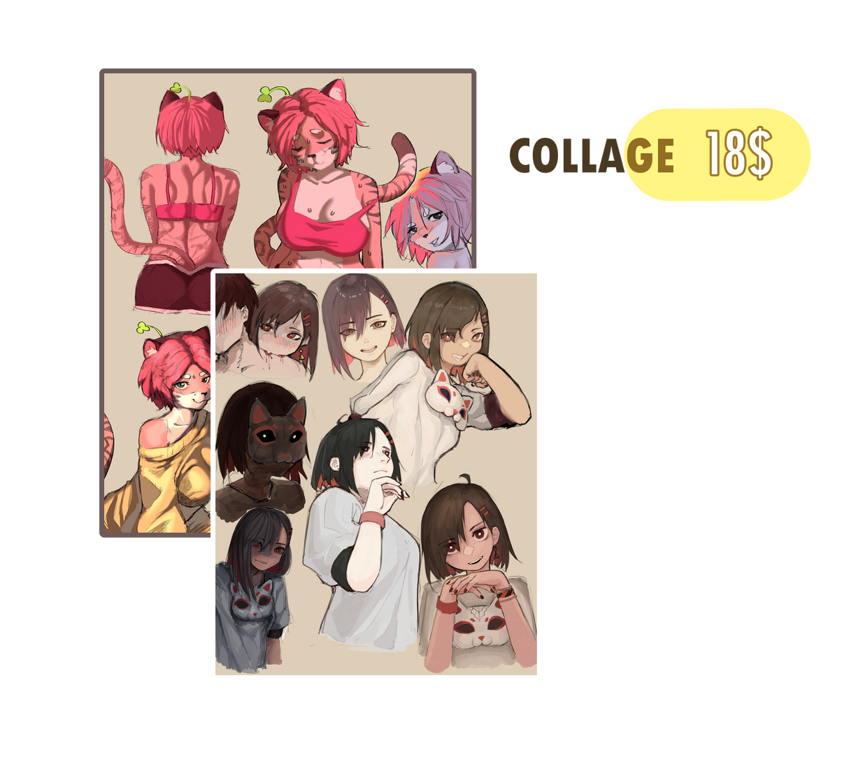 Collage means several(3-5) sketches with your character