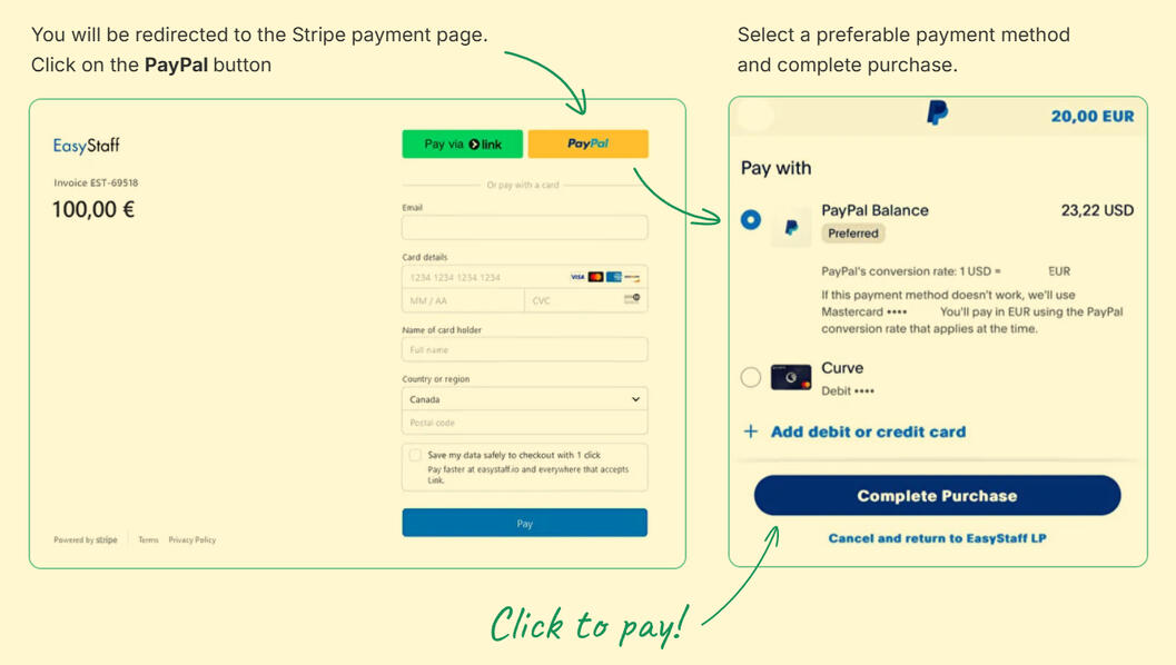 > Payment via Hipolink or Easystart (Easystart have 2 options via Paypal or via Stripe)